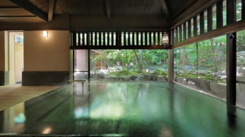 大露天風呂「武蔵の湯」と「つうの湯」は、四季折々の自然に包まれながら静かに湯に浸かることができ、時間の流れがゆるやかに感じられます。この格式高い空間と最高のお湯を享受できるのは、人生の節目にふさわしい贅沢です。肌を滑る柔らかなお湯と、竹林のそよぎが、心身を深い瞑想状態へと導きます。